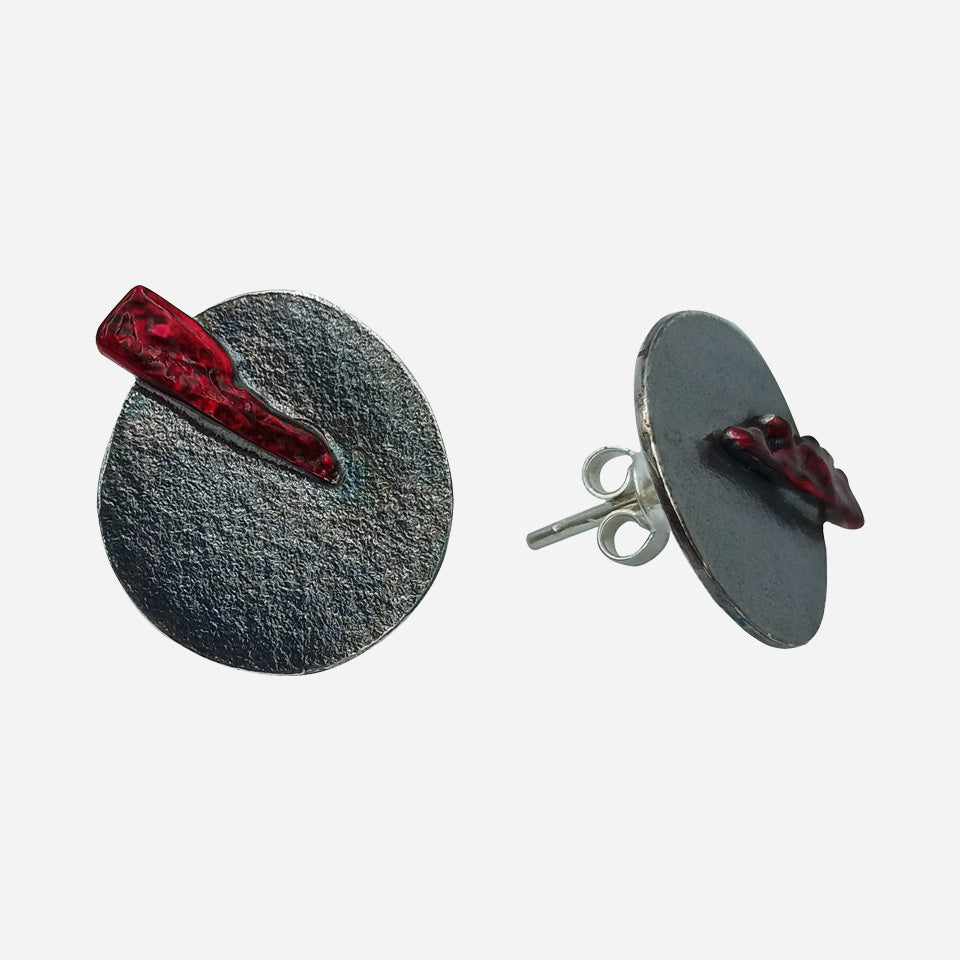 Continue shoppingHandmade earrings, oxidized silver 925, enamel in deep red hues (1,8x1,5cm)