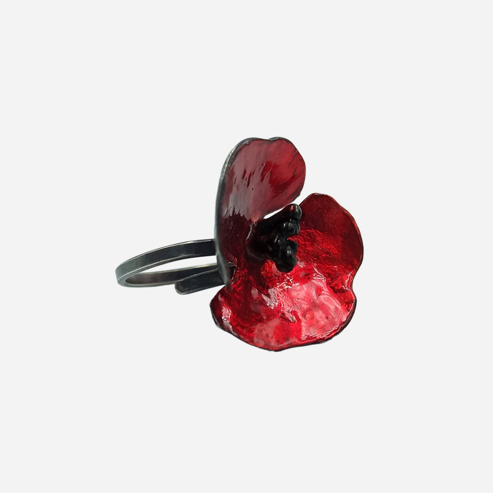 Δαχτυλίδι χειροποίητο ανοιγόμενο από οξειδωμένο ασήμι 925 με κόκκινο σμάλτο 2.2cm.