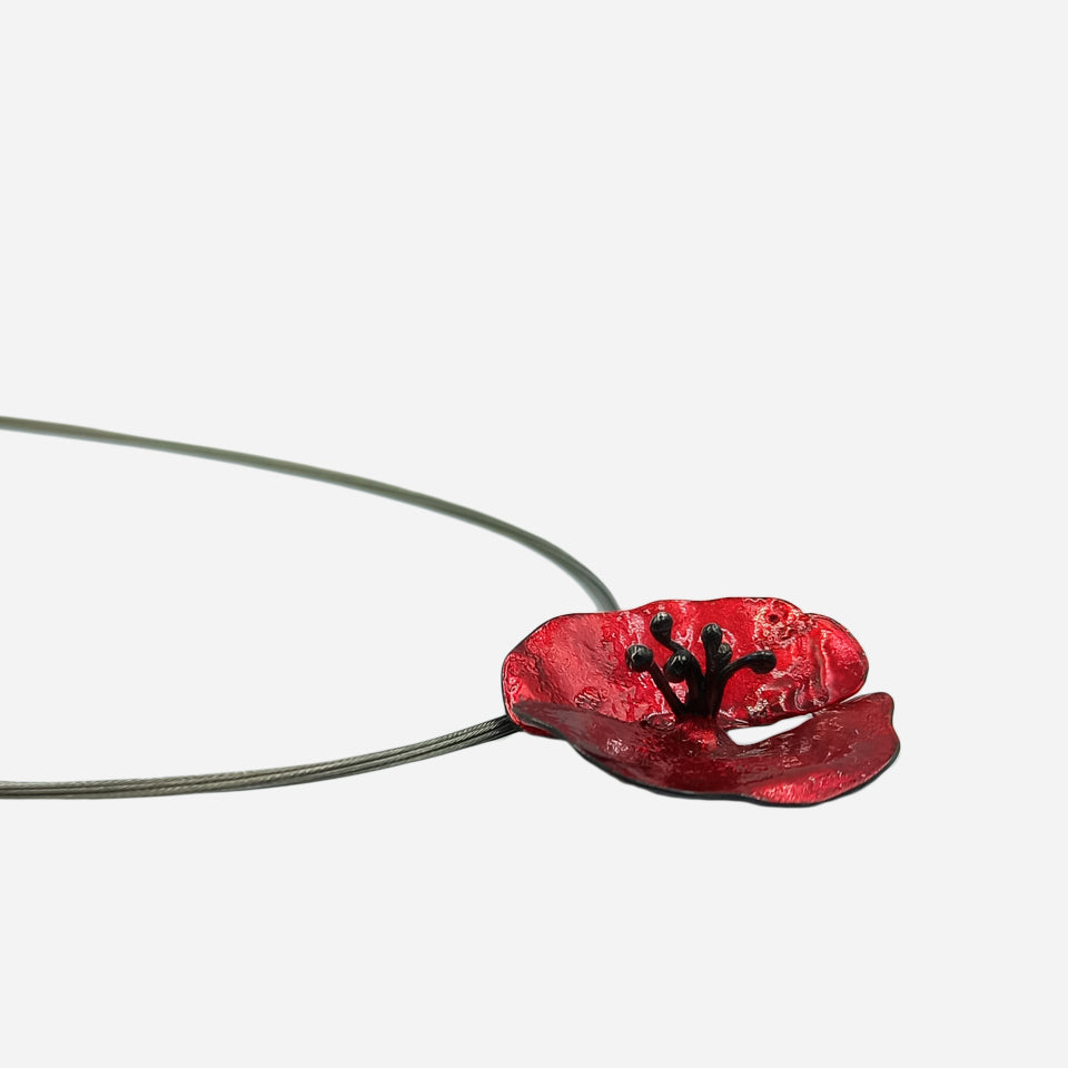 Περιδέραιο χειροποίητο από οξειδωμένο ασήμι 925 με κόκκινο σμάλτο 3.5cm (Ατσαλόσυρμα 41cm)