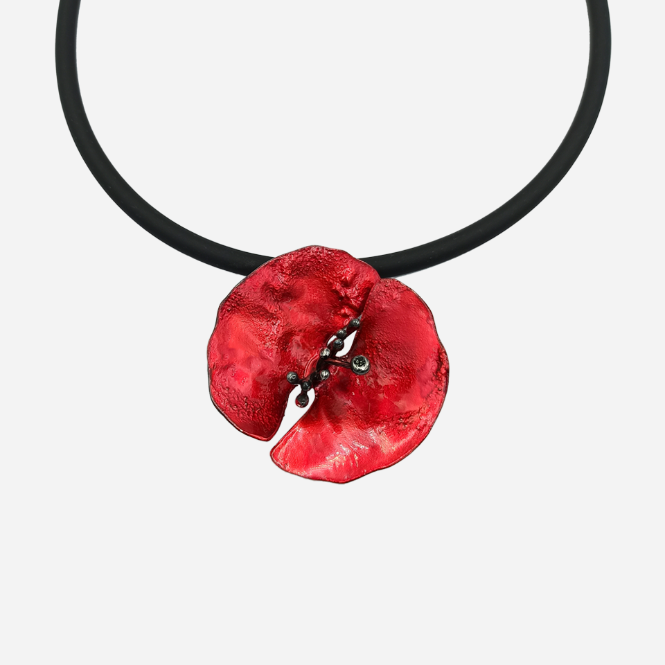 Περιδέραιο χειροποίητο από οξειδωμένο ασήμι 925 με κόκκινο σμάλτο 5cm (Καουτσούκ 46cm)