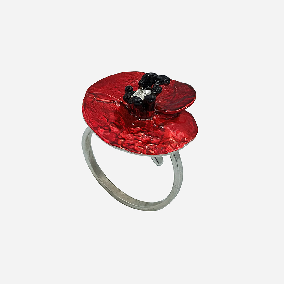 Continue shoppingOpen ended handmade ring, silver 925, enamel in red and black hues (2,1cm)